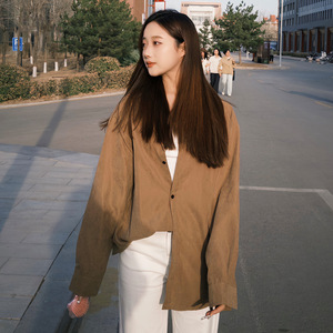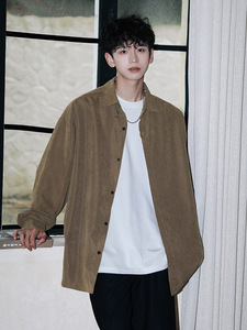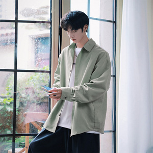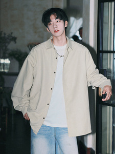 NASA日系春秋季潮牌青少年长袖衬衫宽松情侣款简约风休闲衬衣外套