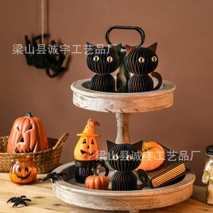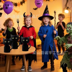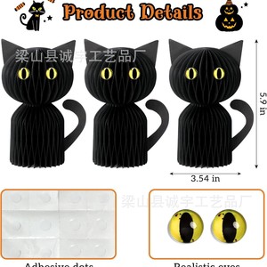 黑猫万圣节摆件装饰蜂窝餐桌中心摆饰幽灵室内装饰猫咪蜂窝球摆件