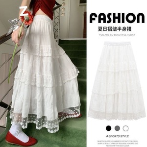白色半身裙女设计感蕾丝花边蛋糕裙春夏高腰法式长裙大摆a字裙子