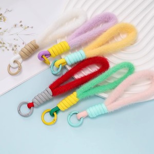 彩色毛绒绒手机挂绳包包手提编织绳公仔玩偶挂饰钥匙扣水壶手提绳