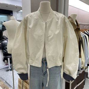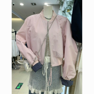 上衣小个子2025女外套立领春季夹克宽松拼接挽袖格子韩版短款新款