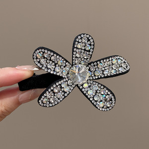 韩版闪钻花朵一字发夹女2025新款千金风侧边夹前额碎发刘海夹头饰