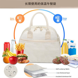 跨境热销手提式饭盒收纳袋上班族午餐便当包灯芯绒学生带饭包厂家