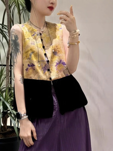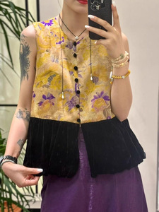 批发新中式国风马甲拼接款时尚百搭无袖上衣复古背心马夹高级感