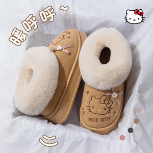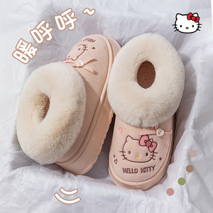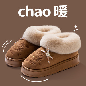 棉拖鞋男女加绒保暖外出包头两穿防滑厚底踩屎感防寒可爱毛毛拖鞋