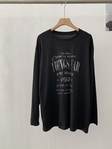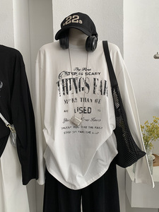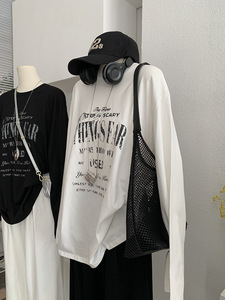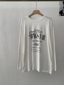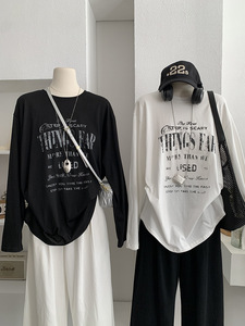 欧玛莱 字母印花宽松圆领长袖中长款T恤初秋休闲百搭上衣批发4480