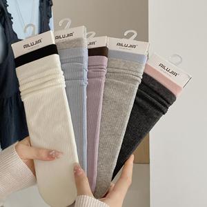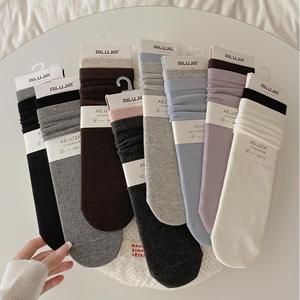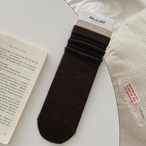 诸暨秋冬季双罗口拼接复古堆堆袜子全棉长款纯棉无骨中筒女袜批发