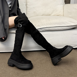 过膝靴子女长筒靴2025新款秋冬两穿翻折小个子厚底弹力高筒骑士靴