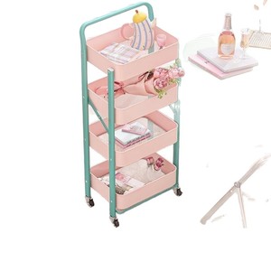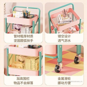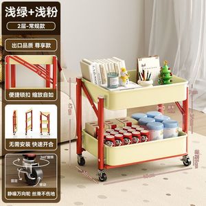 承重强高碳钢置物架免安装带轮小推车ins卧室折叠收纳架多层书架