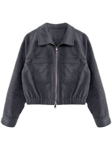 鹿西复古翻领灯芯绒短款夹克女25秋季新款双拉链休闲收腰外套9771