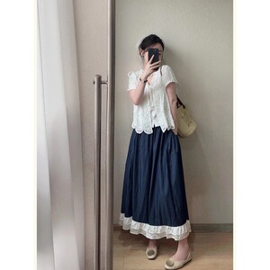 法式白色V领镂空短袖花边领衬衫女夏刺绣蕾丝小衫小个子大码上衣