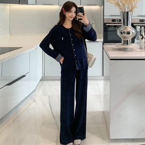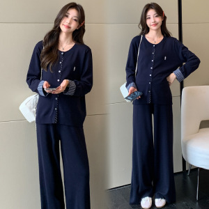 2025秋季新款韩系撞色格子孕妇宽松时尚减龄慵懒风针织套装