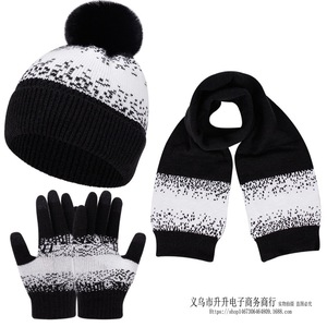 2025冬季韩版时尚针织毛线帽女保暖帽子围巾手套三件套护耳套头帽