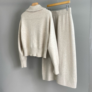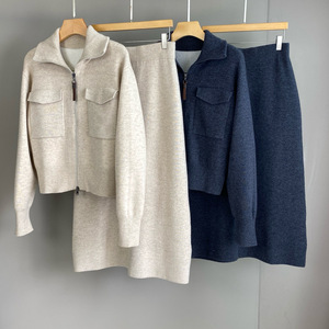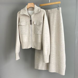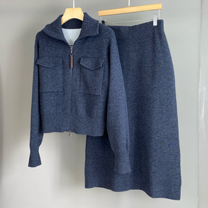 南油篙品25秋冬新款BC口袋羊绒翻领拉链针织毛衣外套松紧腰半裙