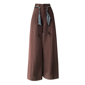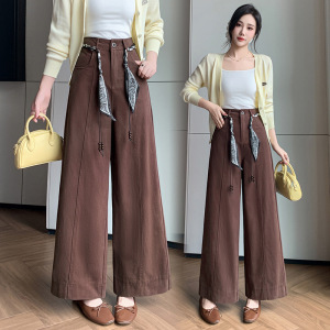 现货2025秋新棉高腰显瘦设计感腰带高腰长裤宽松阔腿休闲裤女