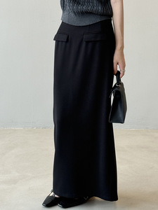 言双 赫本风包臀半身裙女 秋季新款高腰显瘦直筒后开衩长裙82579