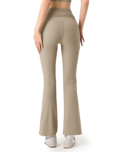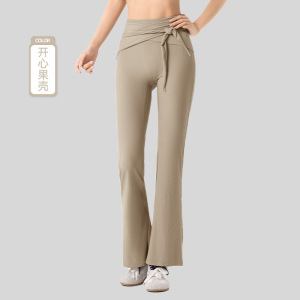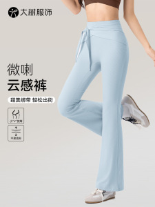 云感瑜伽喇叭裤高腰绑带蜜桃提臀运动长裤罗纹高弹休闲微喇阔腿裤