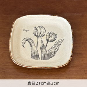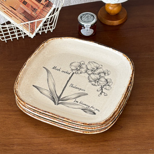穆尼 ins创意复古花卉陶瓷正方盘西餐沙拉盘减脂减肥餐盘新款餐盘
