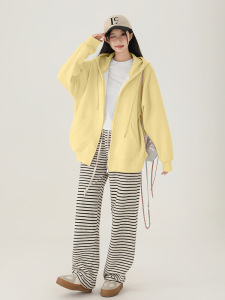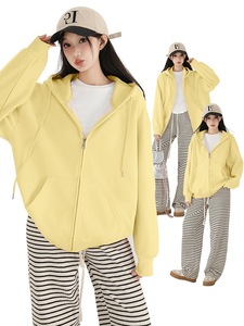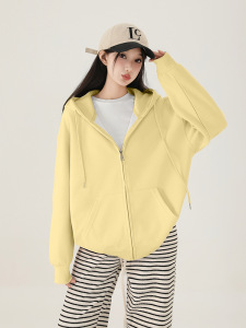 奶黄色卫衣外套女2025秋季新款女装穿搭韩系慵懒风上衣拉链开衫