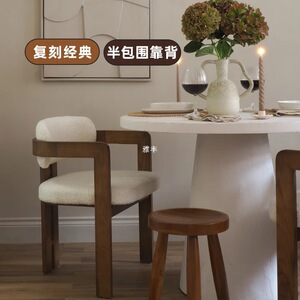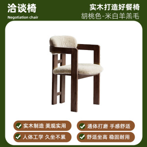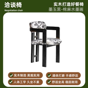 侘寂风餐椅中式简约实木椅扶手靠背椅餐桌洽谈椅酒店售楼处单人