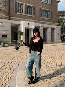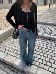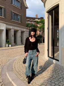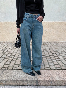 誉一新款2025秋季美式高街直筒牛仔裤女ins个性口袋休闲裤女a9038