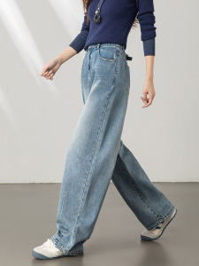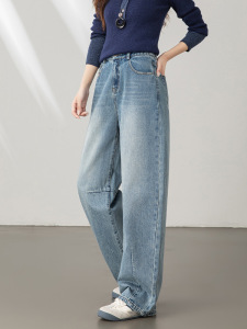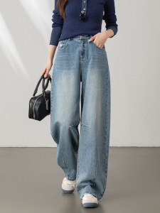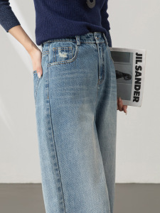 秋季新款全棉阔腿弯刀牛仔裤美式高腰垂感显瘦潮流百搭微镰刀女裤