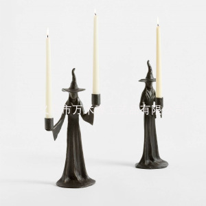 跨境新款Handmade Black Witch Statue 女巫雕像万圣节树脂烛台