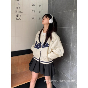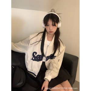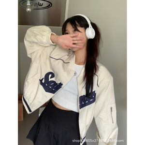 撞色字母刺绣拉链棒球服女2025早春新款时尚休闲长袖立领夹克外套