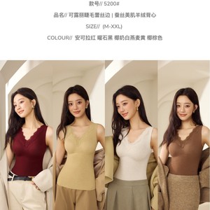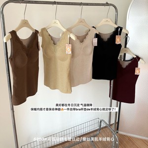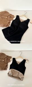 5200跨境V领蕾丝羊毛双面磨毛无痕保暖背心加绒加厚打底内搭文胸
