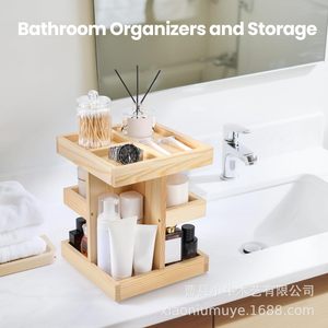 实木旋转置物架复古桌面梳妆台化妆品整理架桌面香水分层整理架