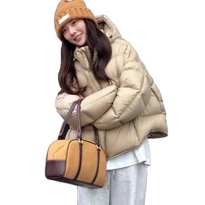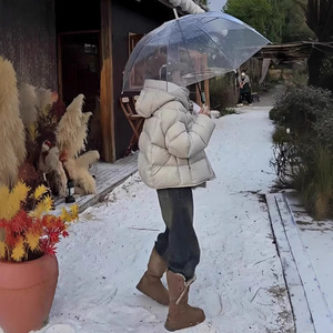 羽绒棉服女短款2025秋冬纯色泡芙连帽宽松面包服加厚保暖棉服外套