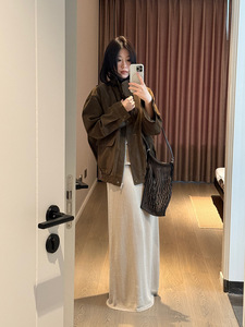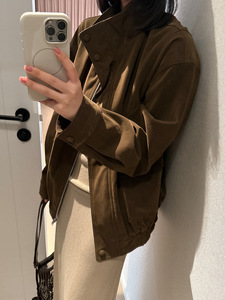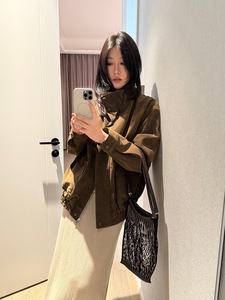 FOX ROOM 复古立领麂皮外套2025秋季新款宽松拉链夹克开衫A5593