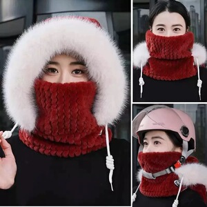 帽子围巾口罩一体女防寒毛绒面罩护耳冬季骑车保暖防风包头围脖帽