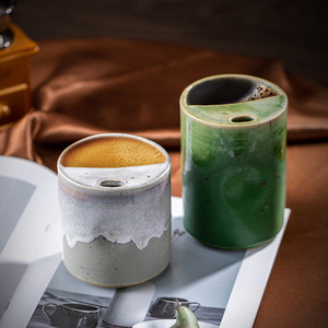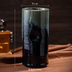 窑变复古咖啡杯水杯创意陶瓷直筒杯大容量吸管杯跨境粗陶马克杯子
