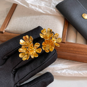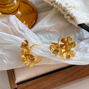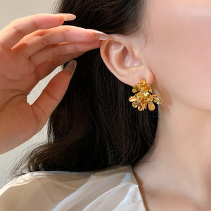18K真金电镀夸张个性花朵耳环女925纯银针欧美跨境爆款冷淡风耳钉