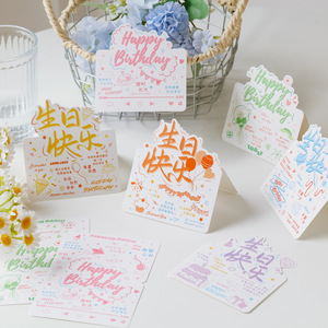 生日快乐系列立体贺卡花店烘焙文艺卡通涂鸦祝福语手写生日卡片