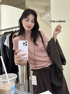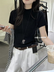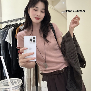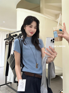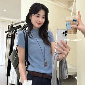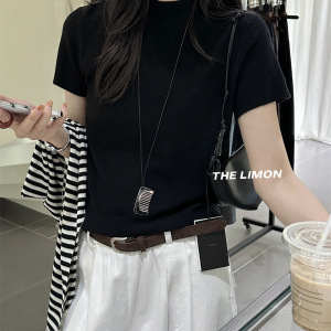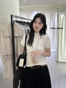 the limon柠檬绿茶2025秋季新款半高领修身显瘦针织衫女短袖上衣