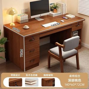 实木款胡桃色140CM四抽+键盘位+主机位