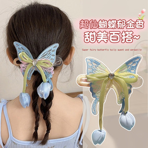 1#粉色纱蝴蝶结约12.5cm-夹子11cm