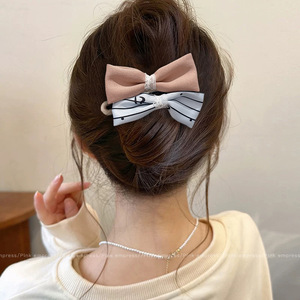 5#杏+蓝条纹双蝴蝶结鸭嘴夹 夹子11cm 蝴蝶结约9cm