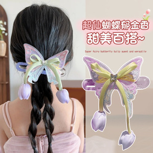 3#紫色纱蝴蝶结约12.5cm-夹子11cm