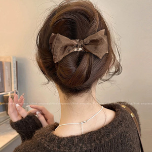 6#卡其+咖双蝴蝶结鸭嘴夹 夹子11cm 蝴蝶结约9cm