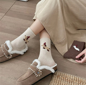 秋冬加厚植绒袜子女中筒保暖羊毛袜韩版ins潮百搭堆堆袜诸暨袜业