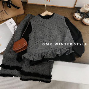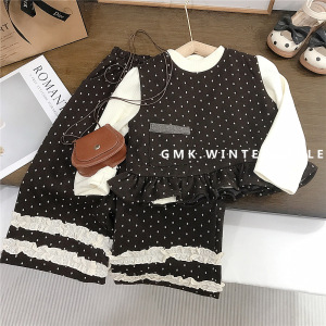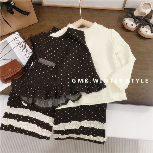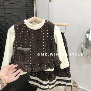 女童春秋套装新款儿童秋装洋气背心裙女宝秋季波点裙子三件套外贸