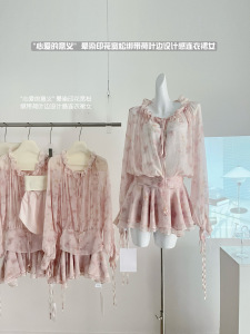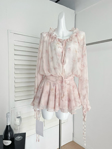 『欣幸』心爱的意义晕染印花宽松清凉绑带荷叶边设计感连衣裙女