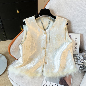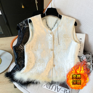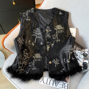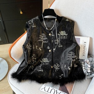 #秋季新中式无袖背心女外穿国风刺绣马夹宽松坎肩马甲