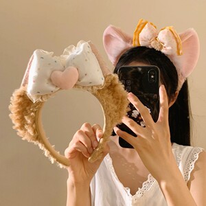 可爱蝴蝶毛绒小熊耳朵发箍女游乐园拍照道具头箍发卡化妆洗脸头饰