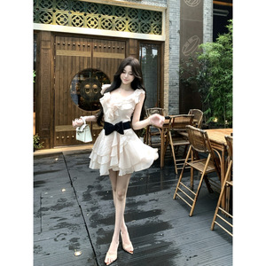 昕可达 粉色连衣裙女秋季荷叶边温柔生日裙子千金感穿搭公主裙