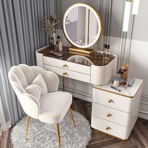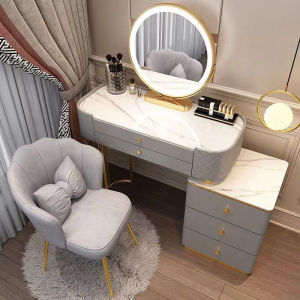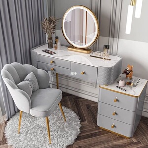 现代简约卧室梳妆台网红轻奢北欧风化妆桌玻璃化妆台收纳柜一体桌