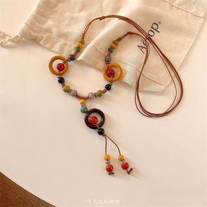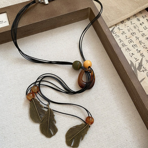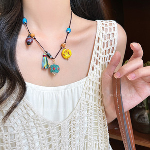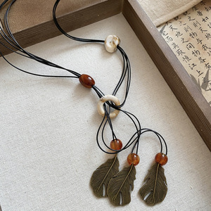 新中式禅意滴油花朵流苏项链复古民族风毛衣链时尚气质项饰饰品女